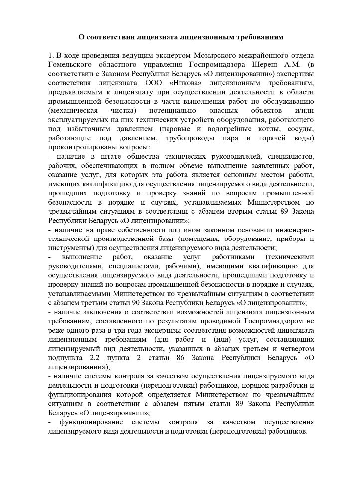 - строгое соблюдение законодательства Республики Беларусь в области охраны труда и промышленной безопасности;